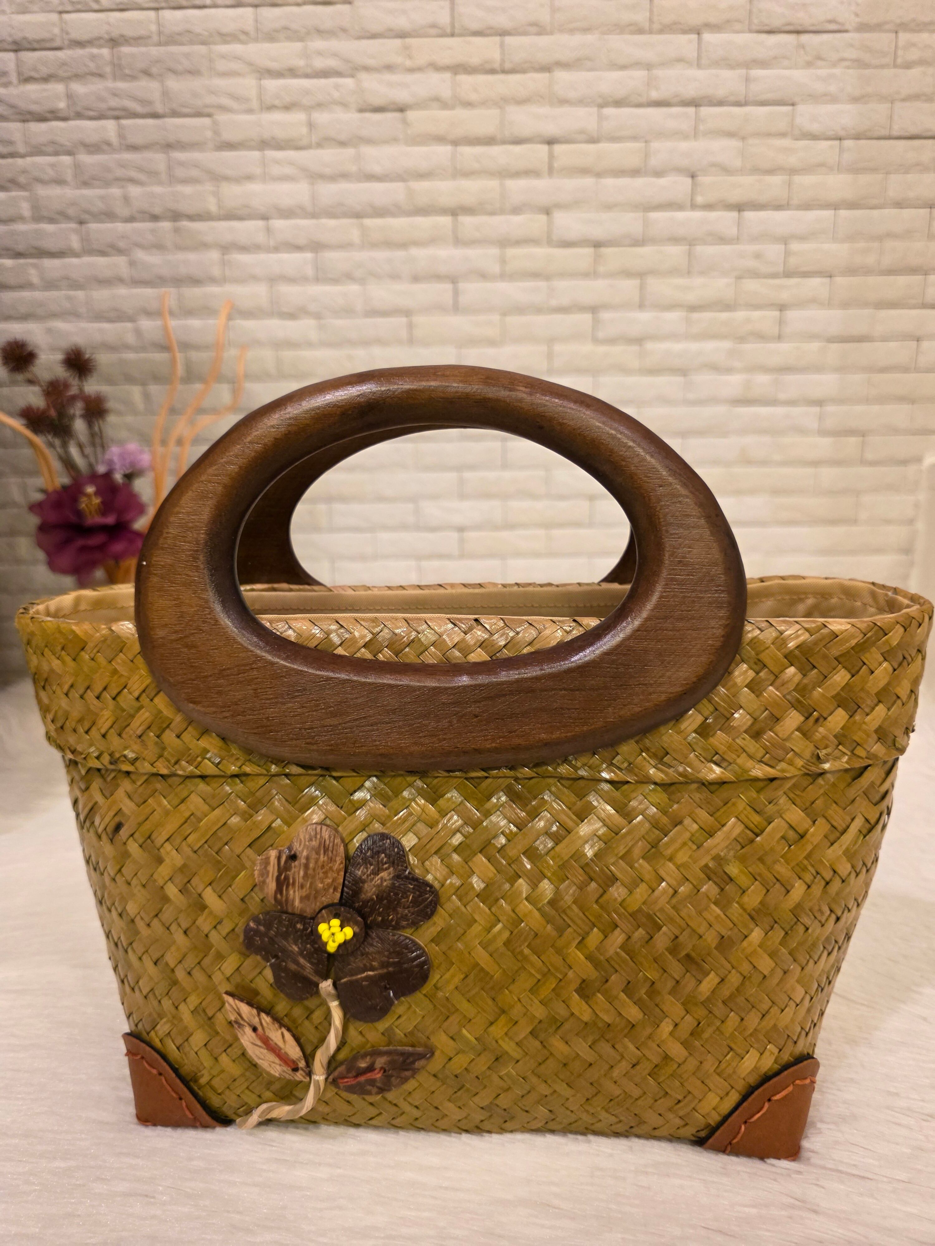 持ち手には温かみのある木製ハンドルを使用し、まるでアート作品のような美しい曲線を描いています。手に馴染む滑らかな触り心地と、ココナッツで出来た花が可愛らしいデザインが、持つたびに気分を上げてくれます。