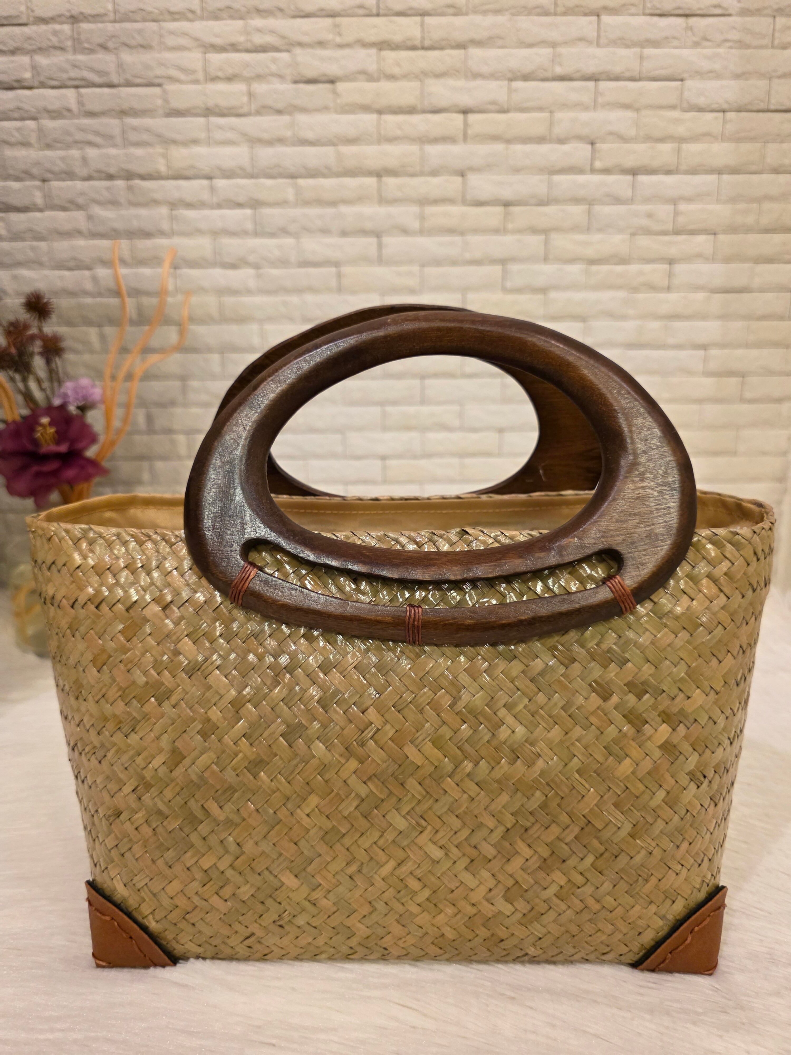 カラフルなテキスタイルと木製ハンドルが可愛い♪ カゴバッグ